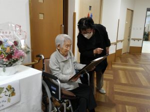 こすもすユニットの小野田様が11月27日に100才のお誕生日を迎えられました!!