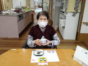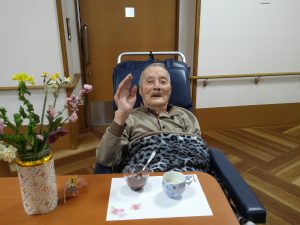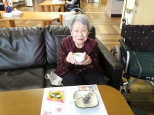 こすもすユニットにてひな祭りのお祝いにひなあられと大手饅頭を頂きましたー(^^)/