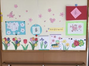 2階廊下に春の作品を飾っています(*^^*)